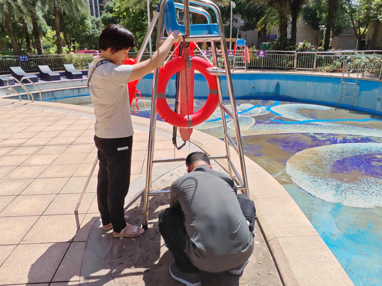 本次安全生产执法检查,工作人员依据《经营高危险性体育项目许可管理办法》等相关规定,重点检查多个关键环节。在安全设施配备方面,重点检查了高危险性体育项目经营场所是否根据要求配齐符合安全标准的设备设施,仔细查看游泳池救生观察台数量、高度是否符合标准,救生圈、救生杆等救生设备是否齐全且摆放醒目、易于取用,急救箱和急救药品的配置是否符合要求,安全标识是否做好并张贴在明显的位置。在人员资质配备方面,重点查看了救生员、水质管理员等从业人员是否持有国家规定的职业资格证书,是否按规定数量配备,是否持证上岗,有没有安全责任人员等。在制度建设方面,重点检查了安全应急预案是否完善,是否定期组织应急演练;是否在醒目位置悬挂安全须知、急救流程图等标识;是否对消费者进行安全提示等。