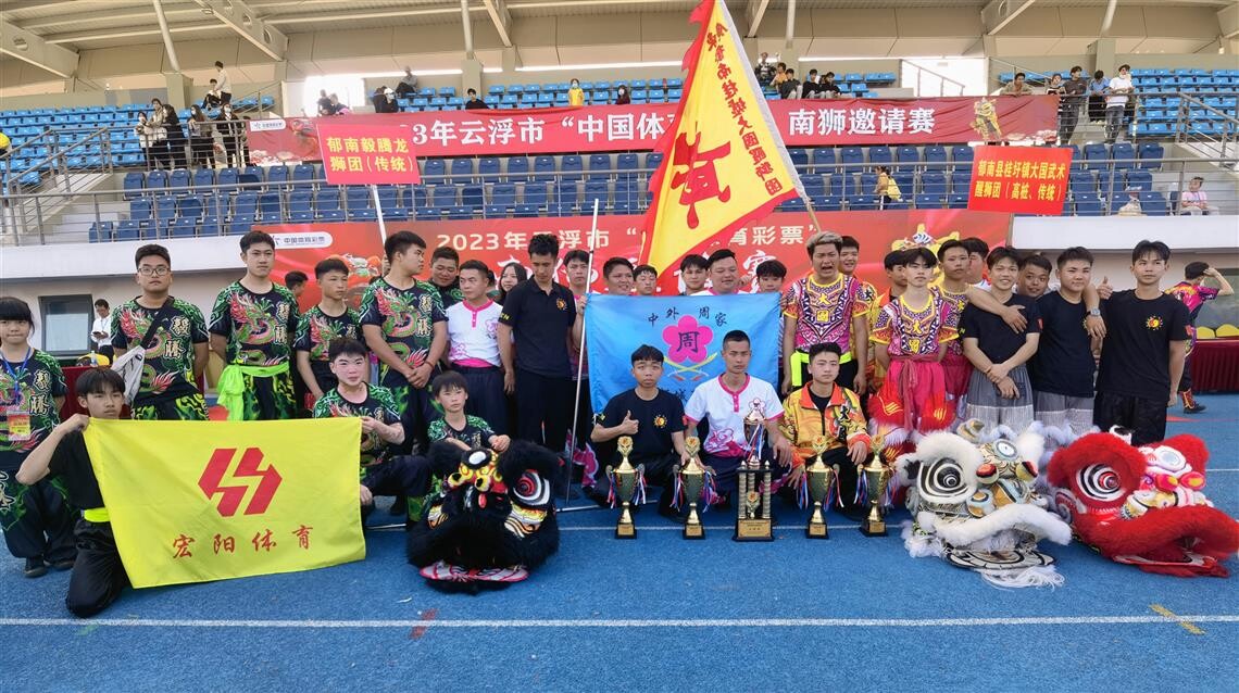 近日,由云浮市文化广电旅游体育局主办、云浮市龙狮运动协会承办的2023年云浮市“中国体育彩票”南狮邀请赛在云浮市体育公园成功举办,郁南县龙狮运动协会组织郁南县桂圩大国武术醒狮团、郁南宏阳体育会、郁南毅腾龙狮团、中外周馆西江都城醒狮二团4支队伍参赛,载誉归来。
