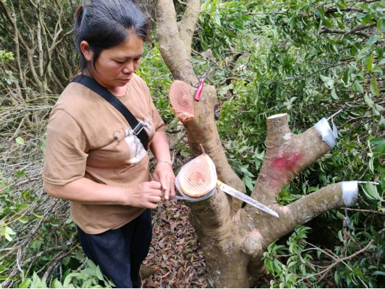 项目落地茆岭村后,专业嫁接团队根据当地气候、土壤条件及市场需求,选用经前期深入调研筛选的优良荔枝品种开展嫁接,从源头上保障荔枝的产量和品质。同时,嫁接过程中,技术人员还现场为当地有劳动力的脱贫户、监测户讲解嫁接技巧、后期养护等知识,让农户在观摩学习中掌握科学种植技能,实现“技术入户、技能赋能”。