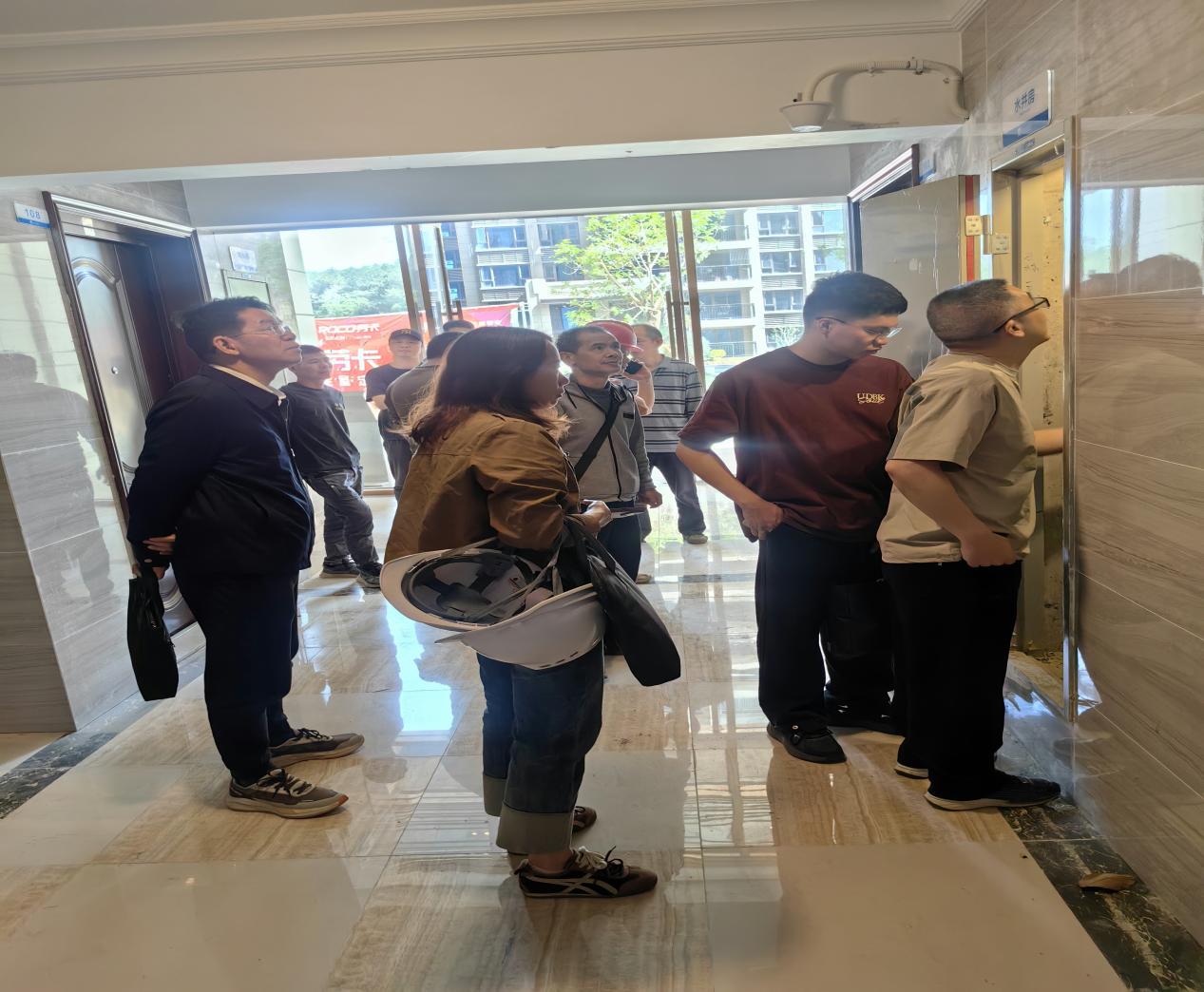 在郁南县碧桂园西江府5-8号楼现场检查,检查组人员对该项目建设工程消防设计审查许可、申请消防验收等情况进行检查,通过查阅工作台账等资料,了解了落实消防工作的做法,同时还检查了该项目消防设施、器材是否配备齐全、完好有效;疏散通道、安全出口、消防通道是否畅通等情况。并对存在问题提出工作意见:一是建设单位、施工单位要高度重视建设工程消防安全工作,充分认识消防安全管理工作的重要性,压紧压实安全生产责任,确保思想到位、工作到位、措施到位、防范到位;二是压实企业各方消防安全主体责任。建设单位要履行施工现场消防安全首要责任,施工总承包单位要对施工现场消防安全负主体责任;监理单位要切实履行消防安全监理职责,督促施工单位建立、落实各项消防安全制度及措施。