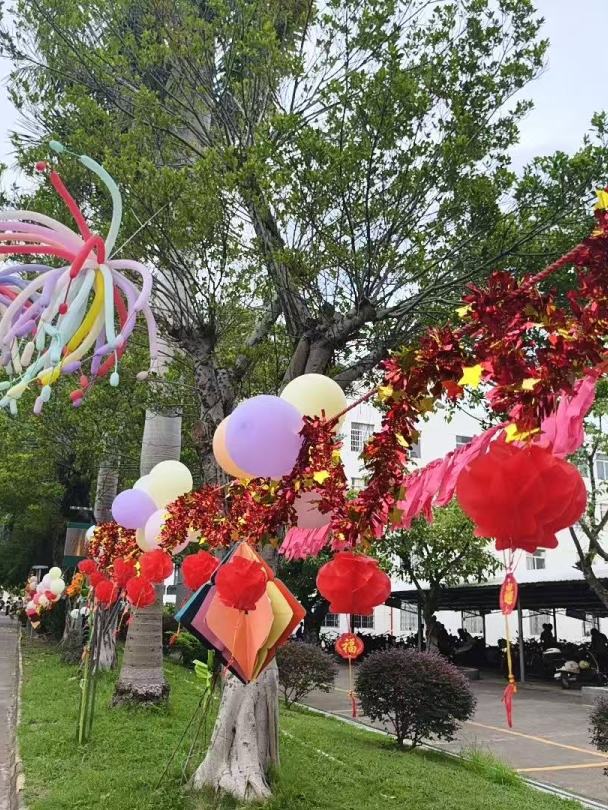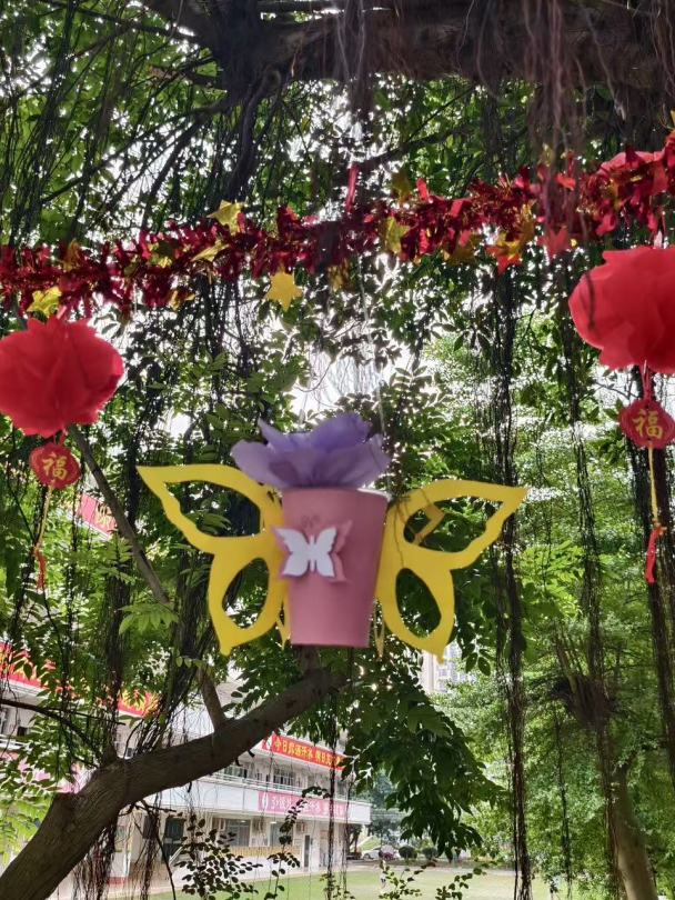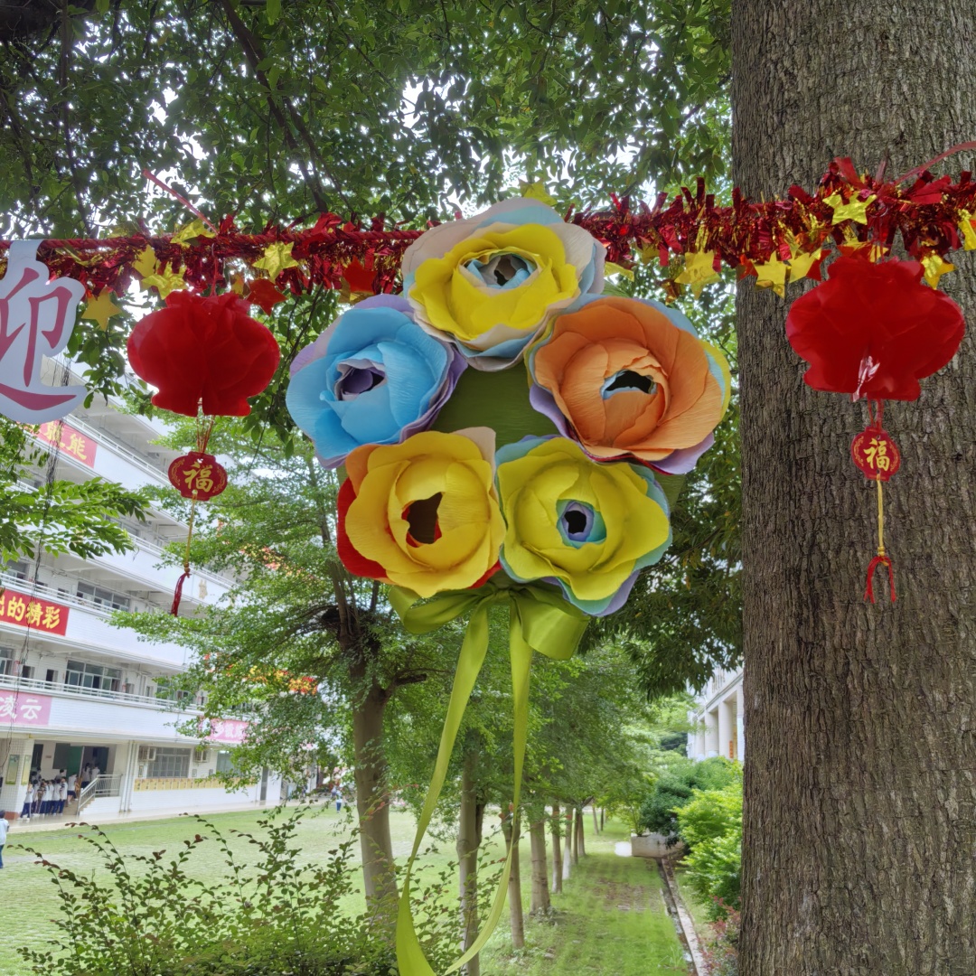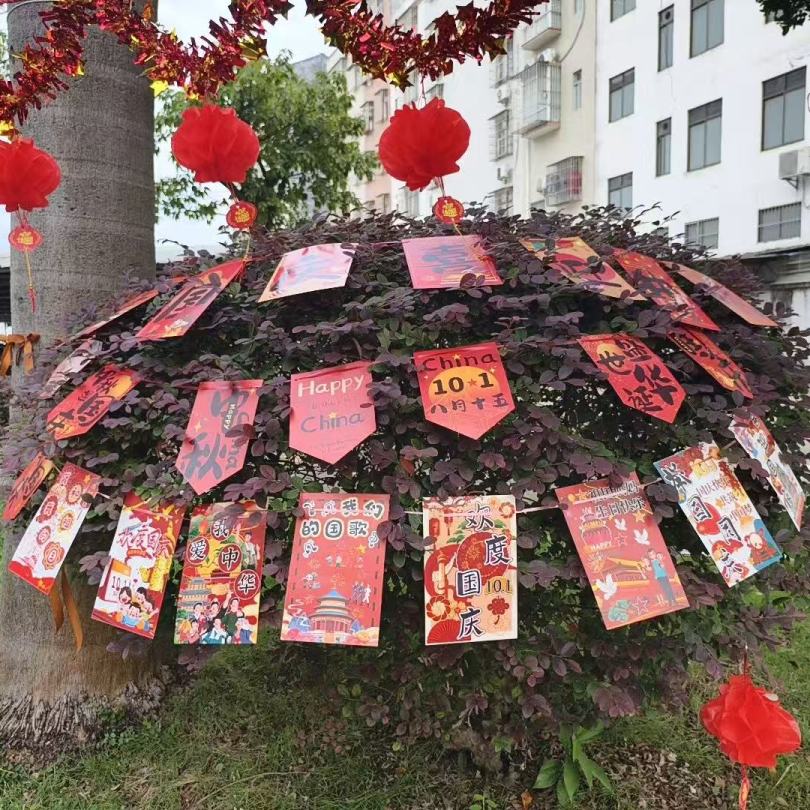 本次活动由学校德育处与团委联合策划,八九年级各班级积极参与,用创意与巧手将校园装点得喜庆而温馨。让学生通过手工劳动,将对传统文化的热爱与对祖国的祝福,巧妙转化为校园中一道道亮丽的风景线。 校园焕新颜,双节同庆氛围浓。彩纸制成的繁花在绚烂“绽放”,形态各异的创意挂饰错落有致;缤纷的彩带与构思巧妙的灯谜交织,共同将校园装点得斑斓绚丽,节日气氛浓郁。 巧手展才艺,匠心独具显情怀。在为期七天的装饰制作与布置期间,各班同学在班主任的指导下充分发挥团队协作精神,利用课余时间精心创作。同学们巧妙运用学校提供的卡纸、彩带等基础材料,同时融入纸盒子、塑料瓶等可回收材料,既体现了环保理念,又展现了无限创意。 9月29日,由校领导、教师代表组成的评审团对各班装饰区域进行了现场评比。评委们对装饰作品给予了高度评价,特别赞赏了同学们在作品中所体现出来的巧思妙想以及对传统文化的传承和对祖国的热爱。最终每个年级评选出一等奖3名,二等奖5名,三等奖8名。 此次活动成功地将美育、劳育与爱国主义教育有机融合,同学们在动手实践中深化了对传统文化的认知,在团队协作中增强了集体荣誉感,在创意设计中抒发了爱国情怀。未来,学校将继续开展更多丰富多彩的校园文化活动,为同学们提供展示才华的舞台,让家国情怀根植在每个学子的心中。
