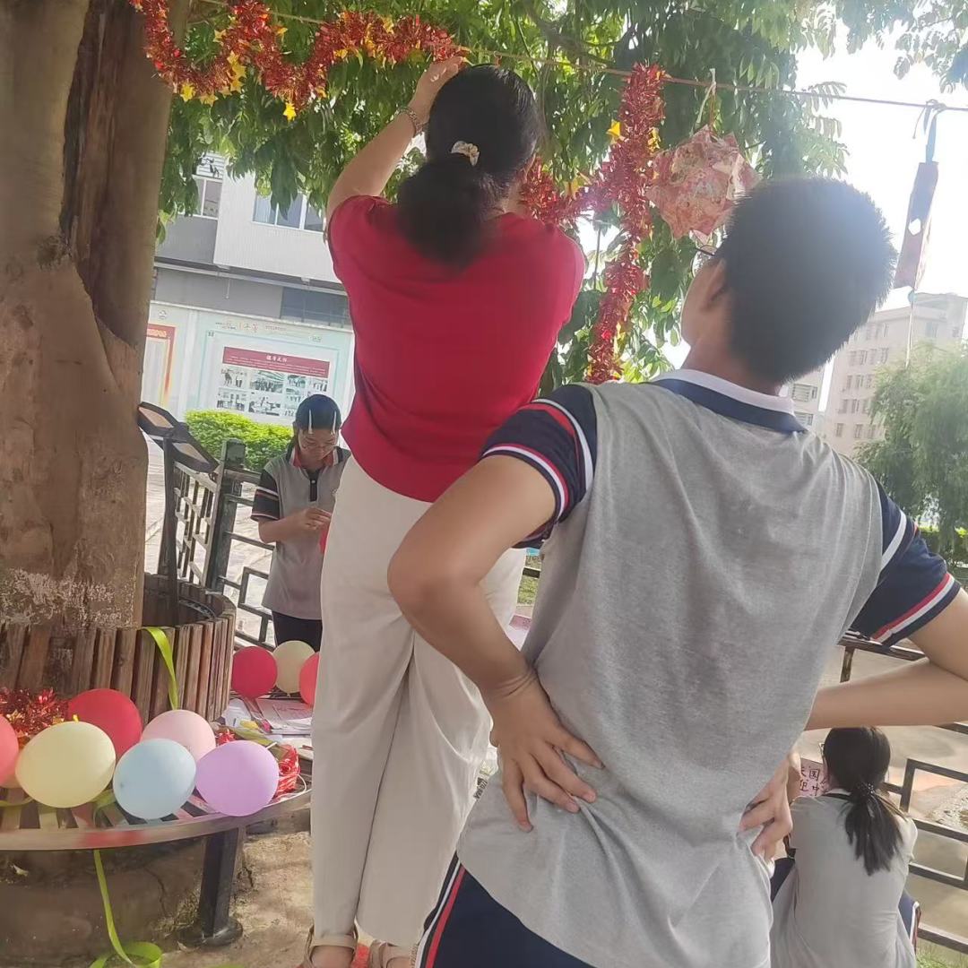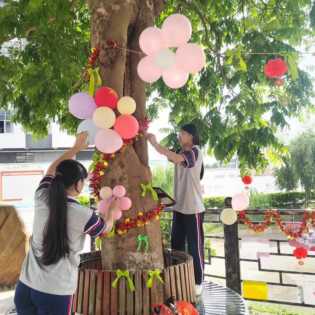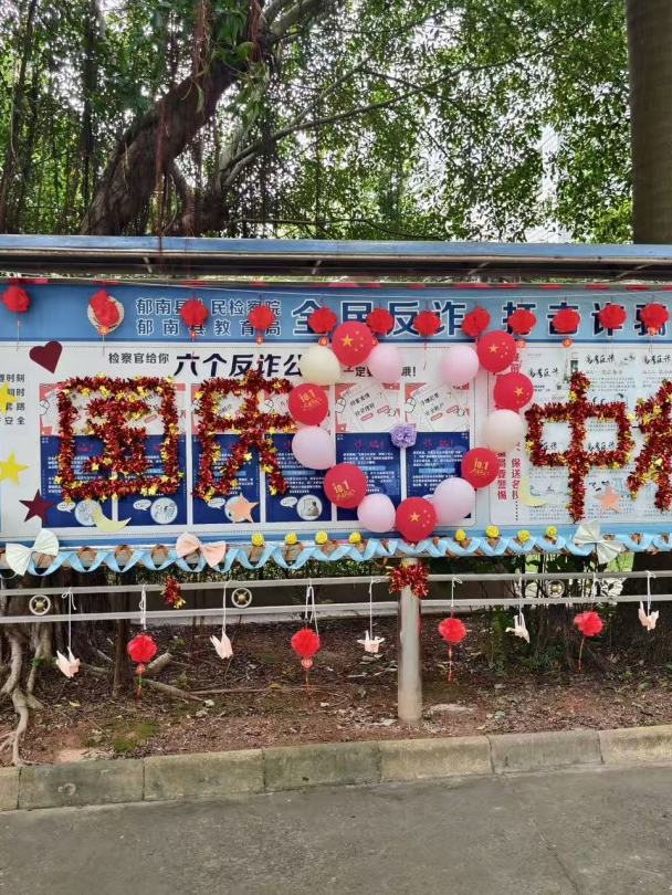 为庆祝中华人民共和国成立76周年与中秋佳节,弘扬中华优秀传统文化,厚植学生家国情怀,营造热烈喜庆的校园节日氛围,强化劳动教育,融合“五育并举”,郁南县实验中学于9月22—29日成功举办了"巧手绘中秋,同心贺国庆"主题校园装饰评比活动。