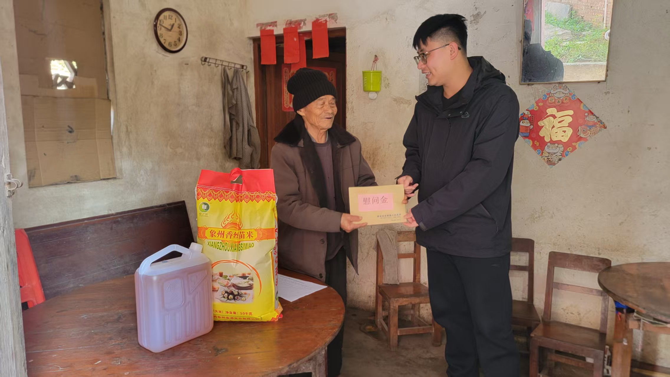 慰问组与慰问对象促膝交谈、嘘寒问暖,详细了解他们的身体近况、家庭生活、收入来源及实际困难,认真倾听心声诉求,细致询问衣食住行、医疗保障等相关情况,对大家反映的问题逐一耐心回应,用真心真情传递党和政府的关怀与温暖,叮嘱注意防寒保暖与用火用电安全,并现场协调解决实际困难。随后,为慰问对象送上米、面、油及慰问金,将实实在在的关怀送到他们手中。慰问对象纷纷表示,感谢党和政府的牵挂与照顾,真切感受到了组织的温暖,对新一年的生活充满期待。