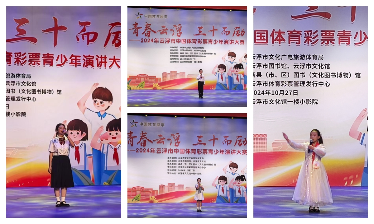 为庆祝中华人民共和国成立75周年及云浮建市30周年,充分展示新中国成立以来的光辉历程和伟大成就,展示云浮建市以来经济和社会各项事业的新发展、新变化、新成就、新形象,引导广大青少年厚植爱党、爱国、爱社会主义的情感,展示我市青少年锐意进取、积极向上的青春风采。由云浮市文化广电旅游体育局主办,云浮市图书馆、云浮市文化馆联合全市公共图书馆于2024年10月27日举办了青春云浮三十而励——2024年云浮市中国体育彩票青少年演讲大赛。