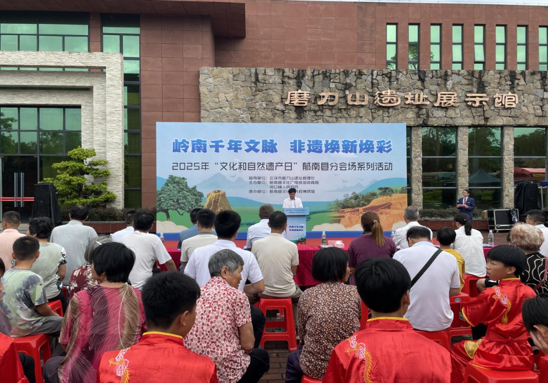 近日,以“岭南千年文脉 非遗焕新焕彩”为主题的2025年“文化和自然遗产日”郁南县分会场系列活动在河口磨刀山遗址展示馆门前正式启动。郁南县委常委、宣传部部长陈荣南出席活动并致辞,云浮市磨刀山遗址管理处、郁南县各镇、县直有关部门负责同志,非遗传承人、民间艺人代表、河口镇中心小学师生代表等参加了活动。本次活动通过多元化的非遗展示与互动体验,生动诠释了传统文化与现代生活的融合,进一步增强了公众对非物质文化遗产的保护意识。
