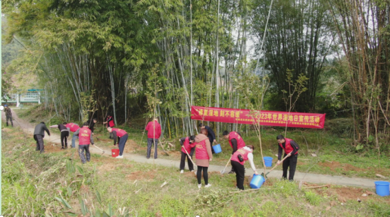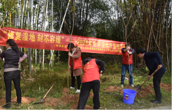 2023年2月2日是第27个“世界湿地日”,也是《中华人民共和国湿地保护法》实施后的第一个世界湿地日。保护湿地,既是一项惠及子孙的千秋大业,也是一项庞大的社会工程。为建设水清河畅、岸绿景美的生态郁南,推进创森工作落在实处,广东郁南大河国家湿地公园开展主题为“修复湿地·刻不容缓——2023年世界湿地日”系列宣传活动。本次活动,共有300余人参与其中,义务植树150余棵,派发宣传资料和礼品600余份。