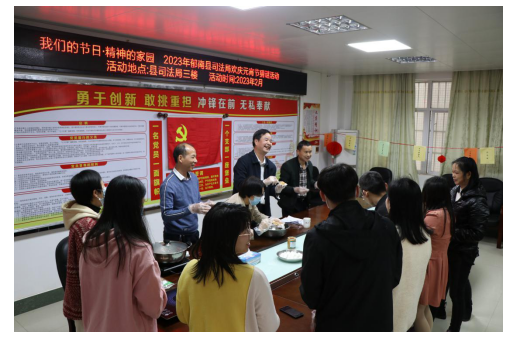 为进一步弘扬中国传统文化,传播社会主义核心价值观,丰富局机关干部文化生活,活跃节日气氛,让大家度过一个温馨、愉悦的元宵佳节,2月2日,郁南县司法局开展了“我们的节日·精神的家园”主题活动。县司法局党组书记、局长赖伟强同志出席了本次活动。
