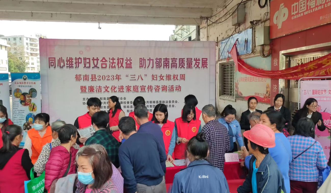 为引导广大妇女及家庭学法遵法守法用法,依法维护自身合法权益,在全社会营造男女平等、和谐共进的良好氛围,3月8日上午,县妇联联合县纪委监委、县委政法委、县司法局、县总工会、团县委、县法院、县检察院等相关单位在县城文化广场,举办“同心维护妇女合法权益 助力郁南县高质量发展”郁南县2023年“三八”妇女维权周暨廉洁文化进家庭宣传咨询活动和开展妇女维权热线12338主席接听日活动。