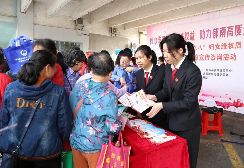 在“三八”国际妇女节到来之际,为进一步强化妇女维权意识,营造保护妇女儿童权益的良好社会氛围,3月8日,郁南法院联合县纪委监委、县委政法委、县妇联、县检察院等单位在县文化广场开展“三八”妇女维权周普法宣传活动。