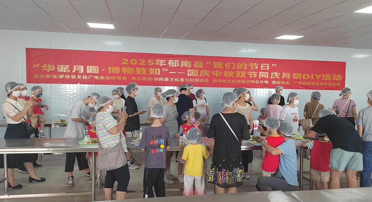 为庆祝国庆、中秋双节,传承中华优秀传统文化,让小朋友与家长在感受文物魅力的同时,抒发家国情怀与团圆心意,由郁南县文化广电旅游体育局主办,郁南县文化图书和博物馆、郁南县文化馆图书馆总分馆承办的“华诞月圆・博物致知”双节同庆文化活动,在郁南县四楼博物馆展厅、广东康美先食品有限公司的康美先DIY展厅顺利举办,来自县城的30组家庭参加了亲子活动。