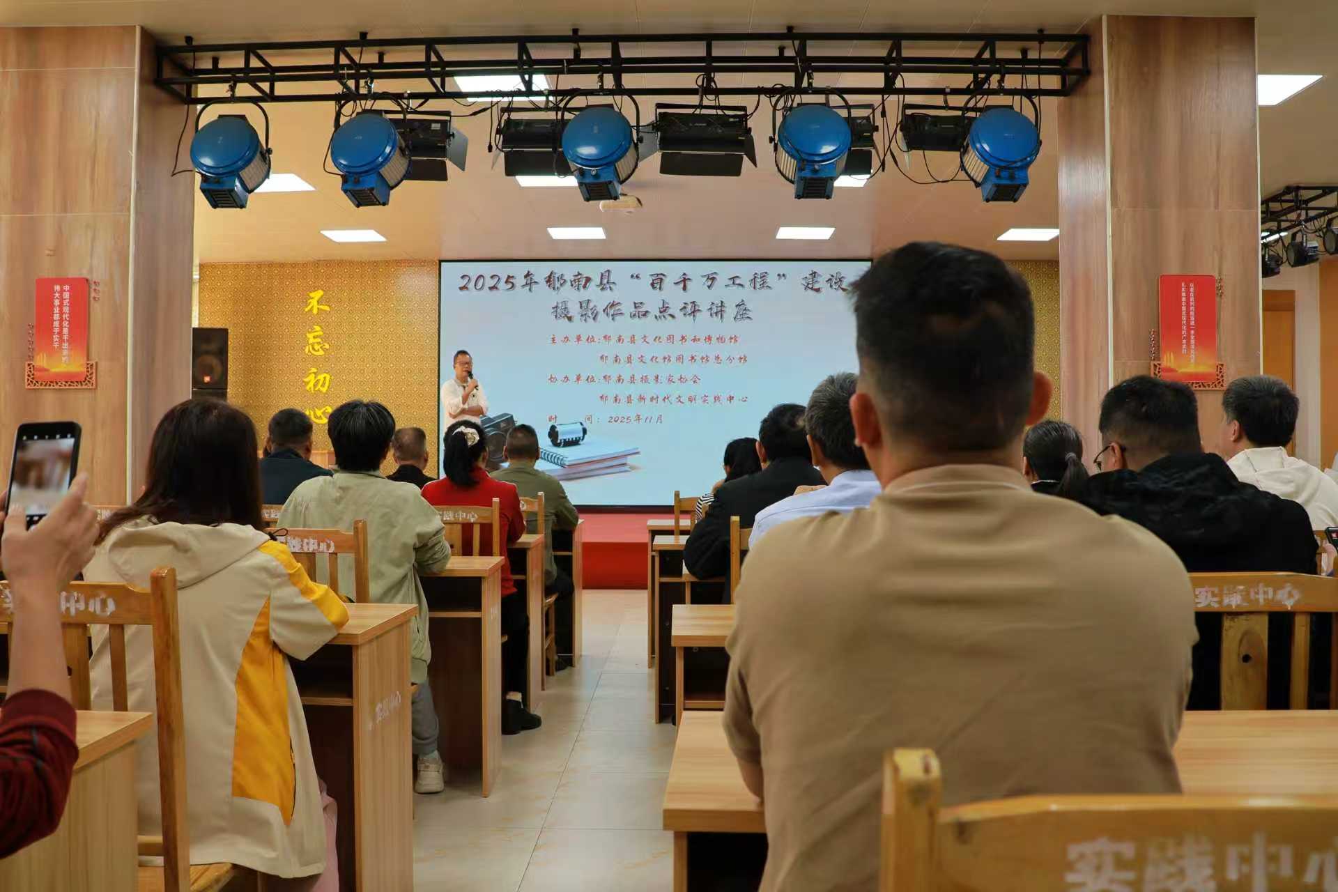 近日,在县新时代文明实践中心组织开展了2025年郁南县“百千万工程”建设摄影作品点评讲座和人文纪实摄影知识讲座,主办方特邀云浮市摄影家协会副主席、郁南县摄影家协会会长杜海洪和郁南县摄影家协会副会长兼秘书长邱小春老师主讲,吸引了群众积极参与。