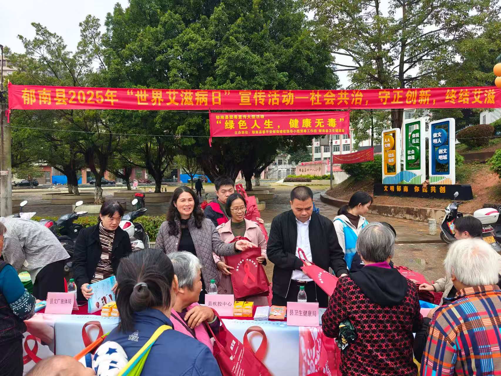 2025年12月1日是第38个“世界艾滋病日”。为广泛普及艾滋病防治知识,凝聚社会共识,营造艾滋病等重大传染病多病共防、群防群控的良好氛围,12月1日上午,郁南县卫生健康局、郁南县疾病预防控制中心组织开展系列艾滋病防治知识宣传活动,面向公众的艾滋病防治知识宣传,动员广大群众积极参与艾滋病预防与控制工作。县公安局、县教育局等相关单位共同参与宣传活动。