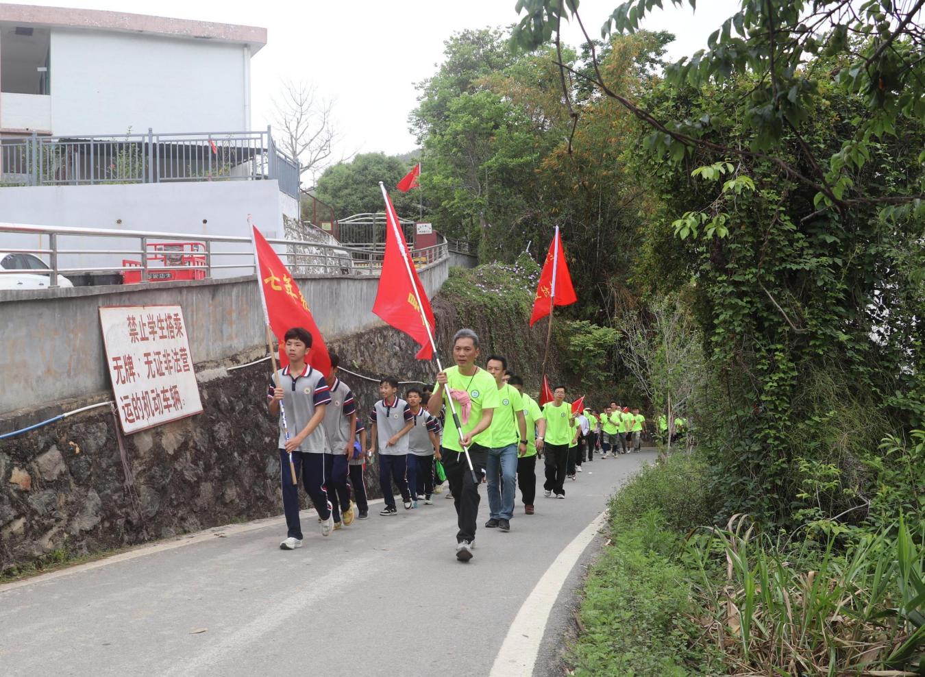 徒步队伍从郁南县民众武力指挥部旧址出发,在春意盎然的乡间道路中前往罗沙革命烈士纪念碑,全程约8公里。行进过程中,补给点志愿者有序分发物资,医护人员全程驻守保障,参与者精神饱满、步伐坚定。207名中学生与55名小学生组成的青少年方阵尤为瞩目,展现了新时代青少年传承红色精神的昂扬风貌。
