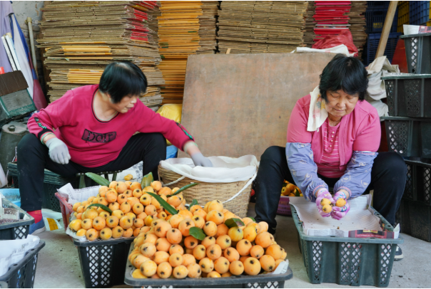 在村里的“枇杷分拣中心”,几名阿姨正在对新采摘的枇杷进行分拣、打包。据村干部介绍,白瓦村常住人口约160人,主要农产品包括黄皮、枇杷、青梅、肉桂。该村开辟特色经济农产品种植新赛道,积极打造高品质“土特产”,推进枇杷产业化发展,家家户户都有,多到3000棵树,20亩左右、一年摘果10多万斤,少到一亩几分。“今年枇杷丰收,目前正是大量上市季节,有云浮、珠三角水果流通商上门收购,统果价格在4.5元/斤左右。村民收入不错,大家干劲很足。”该村干部说。