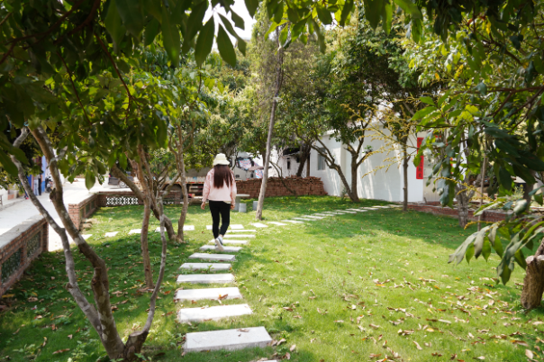 从建城镇西边沿山而上,沿途无核黄皮花开正艳、枇杷成熟金黄一片。大山峡谷、森林绿植掩映间的白瓦自然村印入记者眼帘。这里房屋依山而建、道路蜿蜒盘山,青砖绿草间的小公园、小广场整洁美观,连接山体村道旋转红砖石梯,美化村容村貌的同时,起到固定山体作用。