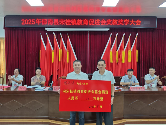 大会现场气氛热烈而庄重,众多学生、教师以及关心教育事业的各界人士齐聚一堂。据了解,本次教育促进会共奖励学生165人,这些学生涵盖了从小学到大学各个阶段在学业上表现突出者,其中不乏在中高考、考研等重要考试中取得优异成绩的学子。同时,有73名教师及教育工作者也因他们在教学、教育管理等方面的辛勤付出和显著成果受到表扬。大会共发放奖金18.765万元,这些奖金不仅是对师生们努力的物质肯定,更是一份激励他们继续前行的精神动力 。值得一提的是,在本次大会中,热心乡贤黎天德再度彰显其对家乡教育事业的拳拳爱心,今年继续捐赠11万元。多年来,他始终如一支持家乡教育,个人捐资累计总额已达157万元,其善举为宋桂镇教育事业发展注入源源不断的动力,成为众多乡贤投身教育公益的榜样。宋桂镇商会也积极践行社会责任,为镇教育促进会捐资3.8万元,以实际行动助力家乡教育事业发展,体现了商会对人才培养和教育事业的高度重视 。在大会上,获奖学生代表分享了自己的学习经验和成长感悟,表达了对教育促进会、老师和家长的感激之情,并表示未来将继续努力学习,不辜负大家的期望。优秀教师代表则表示,将以更高的热情和更严谨的态度投身教育事业,为培养更多优秀人才贡献力量。