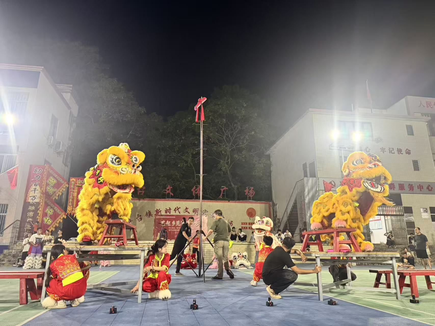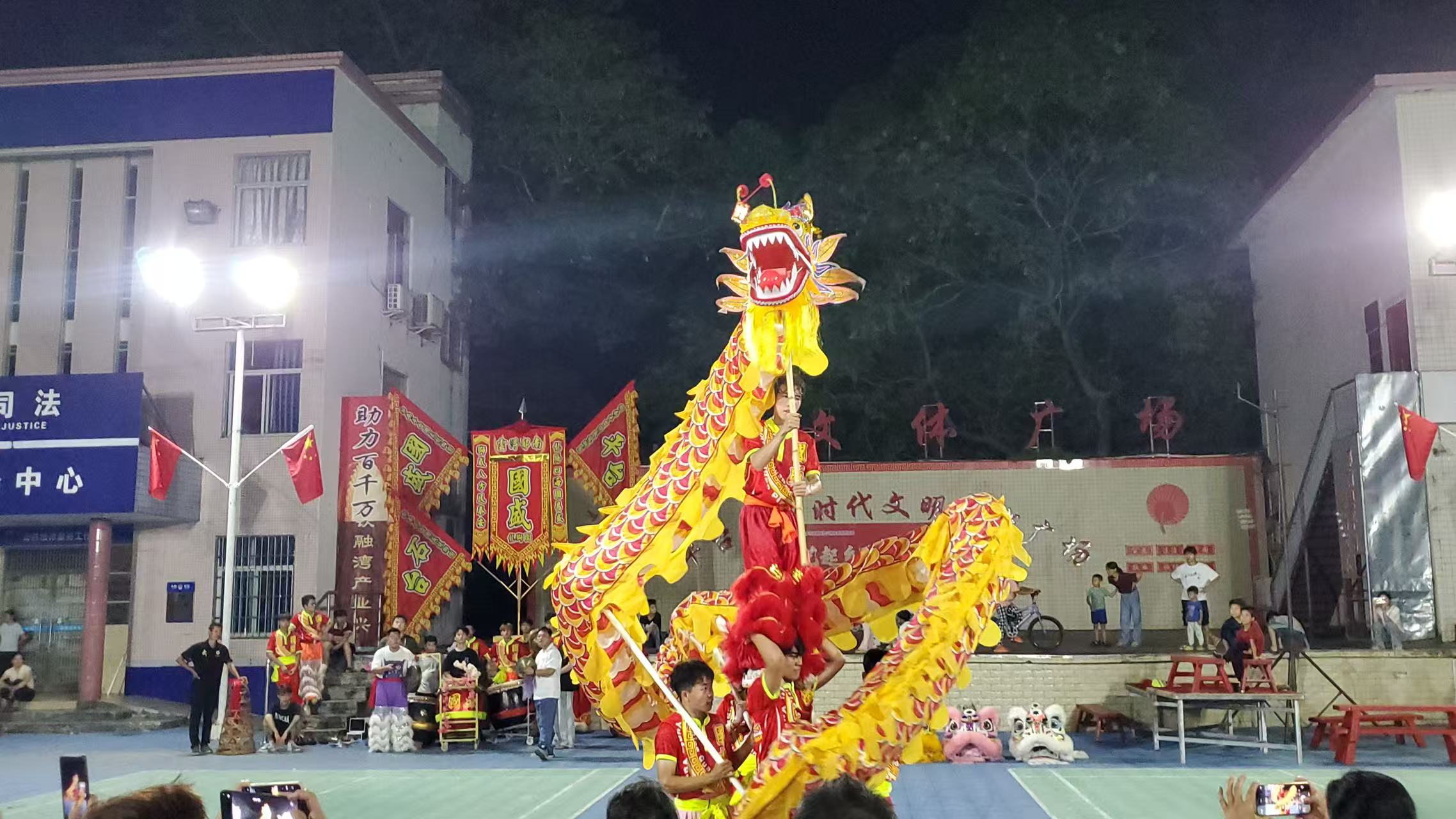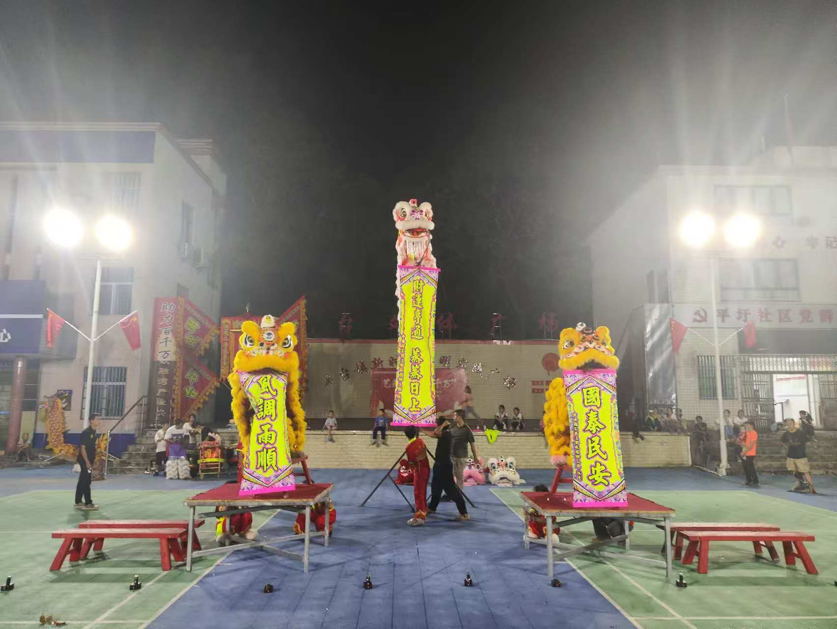 “祥龙贺岁福满至,瑞狮呈祥乐未央。”国庆中秋双节期间,平台镇新时代文明实践广场张灯结彩、鼓乐喧天,一场以“艺起乡见‘百千万’‘同心致远,聚力前行’”为主题的龙狮表演活动暨平台國盛龙狮团成立一周年庆典在此盛大举行。金鼓齐鸣间,群狮腾跃、巨龙盘旋,众多群众游客驻足观赏,在传统文化的浸润中感受佳节氛围与时代活力。