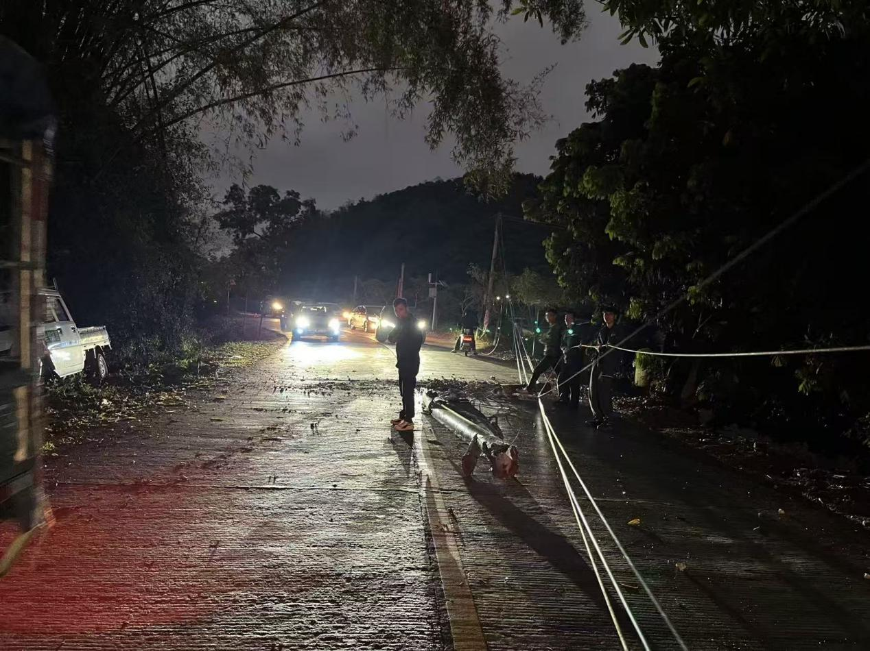 3月3日傍晚,郁南县宋桂镇茆岭村委横岗自然村路段发生一起交通事故,事故导致电线杆倒塌,横拦在道路中间,造成路面通行受阻,给过往车辆和行人带来极大安全隐患。