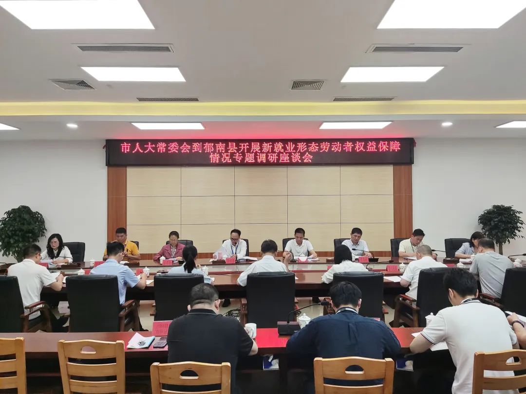 4月22日,云浮市人大常委会副秘书长、市人大社会委副主任委员黄河源率队到我县开展新就业形态劳动者权益保障情况专题调研。县人大常委会副主任张桂泉陪同调研。