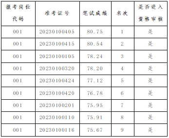 按照《郁南县人民检察院2023年公开招聘劳动合同制司法辅助人员公告》,根据本次考生笔试成绩整体情况,确定笔试合格分数线为60分,按招聘岗位人数1:3的比例,按笔试成绩由高到低顺序确定资格审核对象。