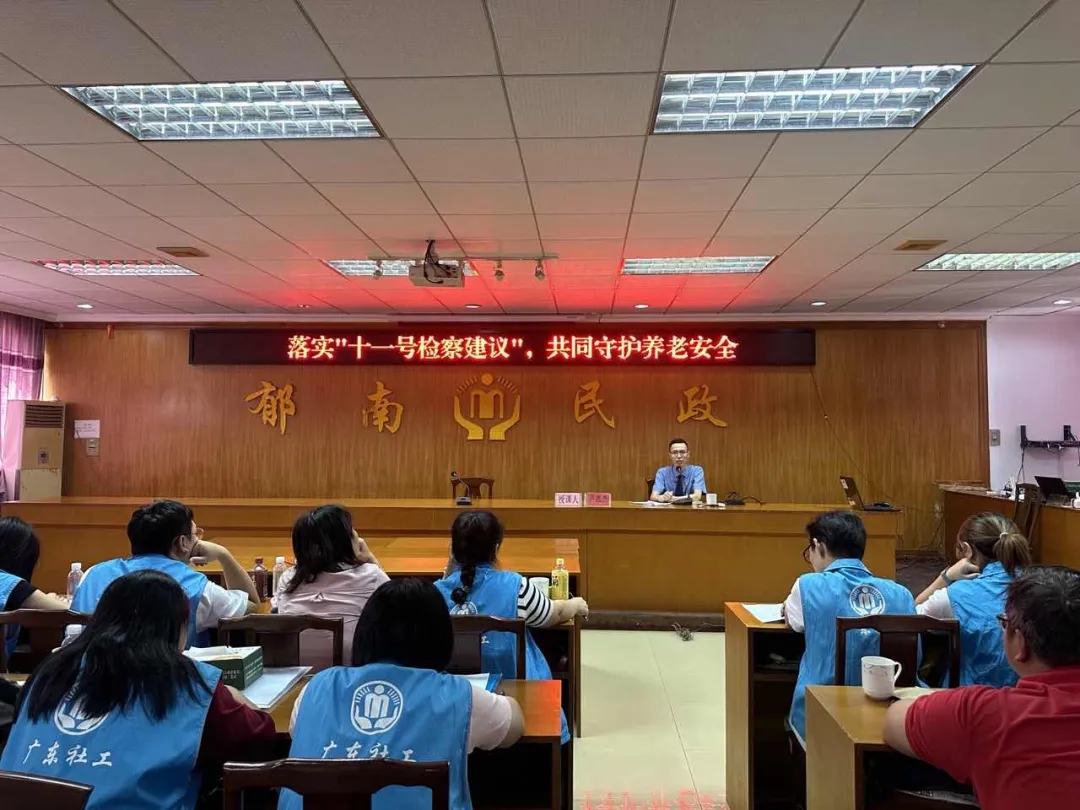 “十一号检察建议”发出以后,我院及时向郁南县民政局送达检察建议,并就如何加强对郁南县养老机构进行监督及如何提升养老护理员的职业操守展开讨论,经过沟通交流后一致决定,由我院与民政局于2024年8月1日-8月2日联合开展针对养老机构及养老护理员的普法专题讲座,旨在提高养老机构及养老护理员的法律意识,共同守护老年人的幸福晚年。