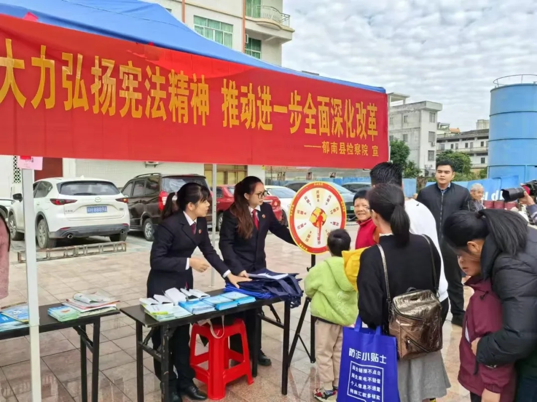 12月4日上午,郁南县人民检察院积极参加2024年郁南县“宪法宣传周”暨“法治文化节”集中法治宣传活动,并现场开展普法宣传教育。
