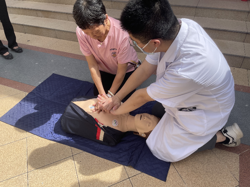 同时,为普及应急救护知识,提升社区居民面对意外伤害的应急自救互救能力,志愿者和县人民医院医生还在现场开展心肺复苏教学,以通俗易懂的方式使大家快速掌握应急救护的基本技能。现场群众积极参与,认真学习,并表示学会了这些应急技能,对自己和家人都多了一份保障。