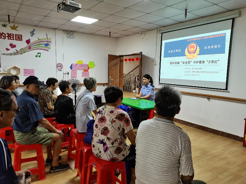为了保障老年人的合法权益,提高老年人的防范意识,7月26日,郁南县公安局走进都城镇居家养老服务中心开展筑牢防骗“安全网” 守护最美“夕阳红”为主题的防范养老诈骗宣传教育活动。