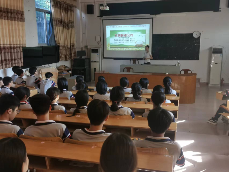 为规范学生用餐行为,提高学生文明用餐、节约粮食意识,9月21日,郁南县教育局在连滩镇初级中学开展“反对浪费、崇尚节约”文明行动进校园系列活动之“文明餐桌、节约粮食”主题讲座。