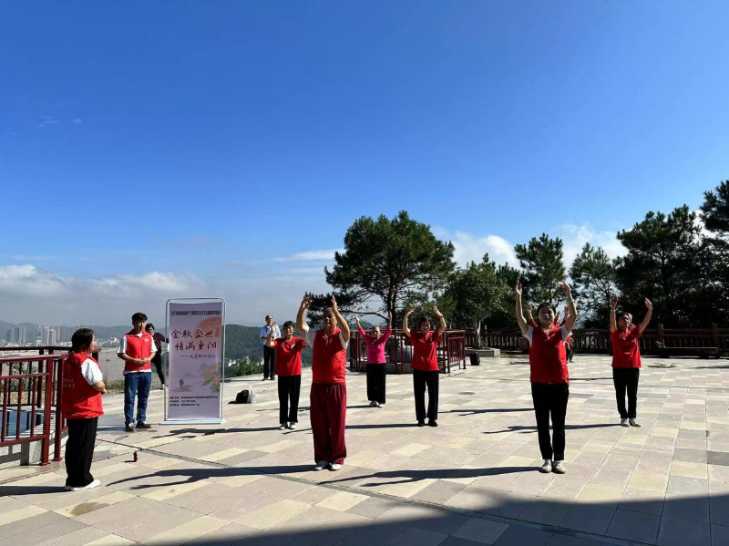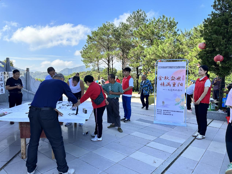 活动中,志愿者带领老人们做禾楼舞导引健康操。随后,进行即席挥毫书法环节,老同志们在同心塔下笔走龙蛇,一气呵成,创作出多幅精美书法作品,弘扬了中国的传统文化,丰富了老年文体娱乐生活,展现出良好的精神面貌,营造喜庆安康、昂扬向上的浓厚节日氛围。