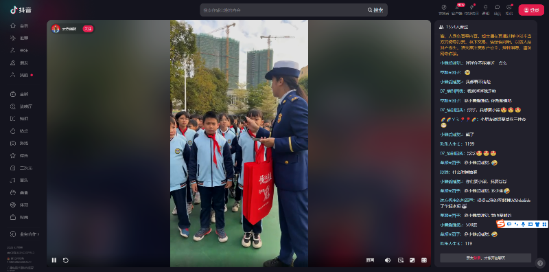 直播中,大队消防员透过屏幕先是向广大网友科普“119”全国消防日的含义和成立背景,然后逐一介绍消防站营区环境、消防科普馆、消防装备展示、指战班房,进行火灾防范宣传,邀请师生们体验烟热帐篷、油桶灭火过程。活动中还设置了有奖问答环节,同学们都纷纷决举手回答,获得消防日主题的精美小礼物。