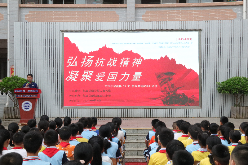 2024年9月3日是中国人民抗日战争暨世界反法西斯战争胜利79周年纪念日。为纪念抗日战争及反法西斯战争的伟大胜利,传承和弘扬爱国主义精神,9月3日,郁南县退役军人事务局邀请“老兵宣讲团”成员在都城镇锦江小学举行“弘扬抗战精神凝聚爱国力量”为主题的抗战胜利纪念日活动。