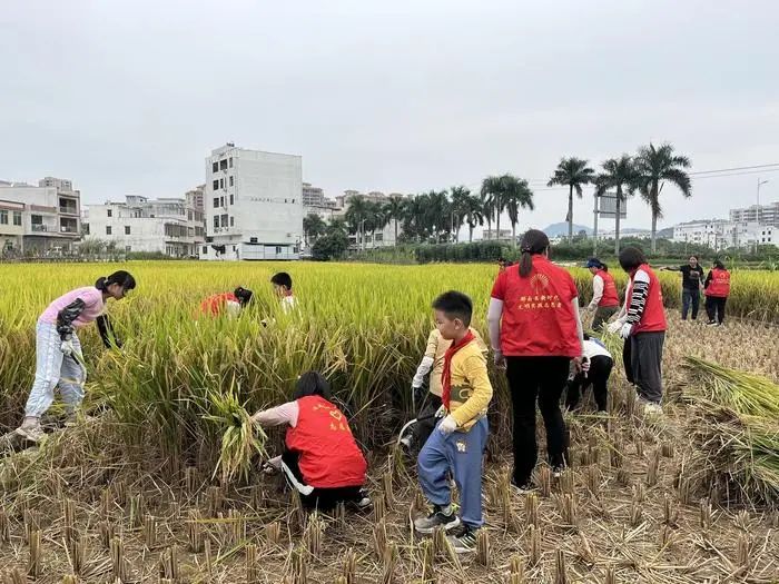 秋收时节,大地流金,稻谷飘香。11月2日,一群学生在稻田里欢快地收割着金灿灿的稻子。这是云浮市郁南县连滩镇新时代文明实践所开展“童心向党,助农秋收”文明实践志愿服务活动。据悉,此次活动共有30多名志愿者参与,其中包括多个家庭,他们为当地的农户提供了秋收的帮助。