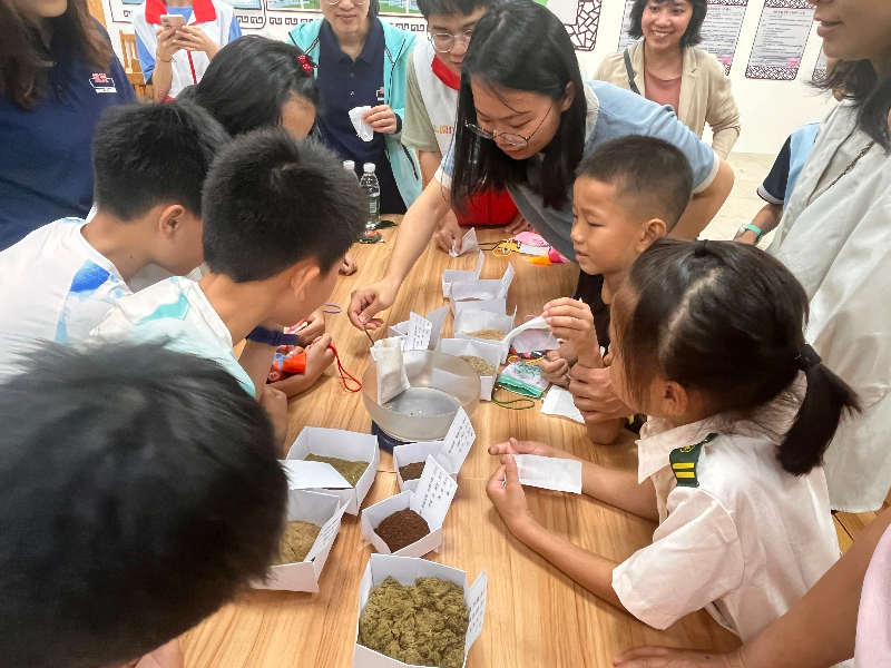 活动期间,孩子们还在中医师的指导下,体验了戥秤、碾船、捣药罐等传统中药房工具的使用,了解古人在精确称量、精细研磨和加工药材的工艺与匠心。活动尾声,承载着收获与欢乐的孩子们手持自制的香囊齐聚台前合影留念,定格这个充满文化馨香与健康暖意的夜晚。