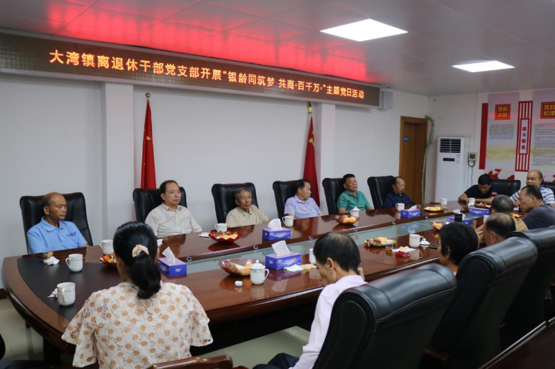 重阳节当天,大湾镇离退休干部党支部组织开展“银龄同筑梦 共商‘百千万’”主题党日活动,以座谈会形式组织开展,为退休党员干部送上美好的节日祝福,让老党员干部感受近年来大湾镇经济社会发展的新成果、新变化,引导老党员干部为“百千万工程”建言献策,助力大湾镇跨越式高质量发展。