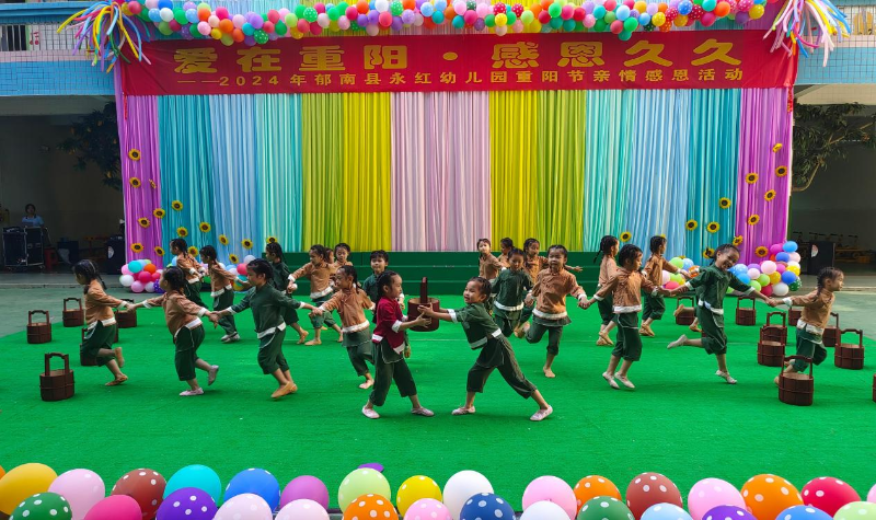 郁南县永红幼儿园精心策划了一场以“爱在重阳  感恩久久”为主题的亲情感恩活动。活动中,孩子们展示了朗诵诗歌、手势舞、舞蹈等精彩节目,向长辈们送上亲手制作的精美礼物,并为长辈们敲敲背、锤锤腿、捏捏肩,用小手传递着对长辈们的深深敬意与爱意。