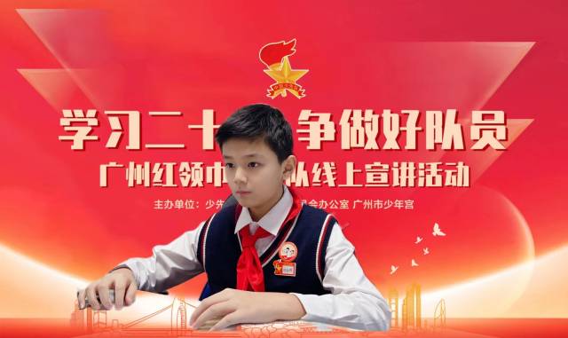 他积极参加全国、省、市、区各级教育实践活动,参与“红领巾爱学习”、“青年大学习”等网上主题队课、团课,夯实自己的党、团、队知识;参与“新时代好少年走读广州”等红色研学活动,走访红色景点和爱国主义教育基地,并为“文明之城”红色研学线路拍摄宣传片;他还用拍摄视频的方式向队员们推荐《共产党宣言》《新时代中国青年的榜样》等红色书籍和红色诗词,传承弘扬红色基因;党的二十大召开以来,他光荣地成为广州红领巾宣讲队首批宣讲员,用少年儿童的声音和视角宣讲党的二十大精神、宣讲新时代。积淀、输出、再积淀、再输出,用语言艺术的各种表现形式为载体,用声音的力量号召新时代少年学史明理,当好社会主义核心价值观的小宣传员。