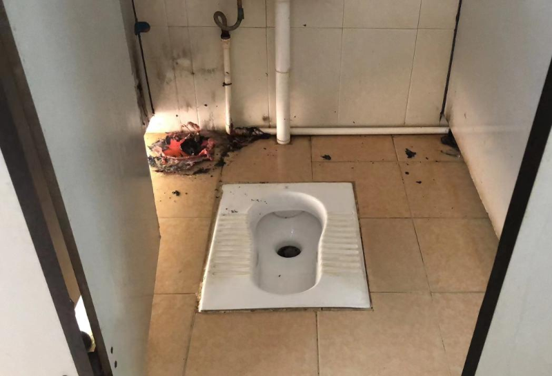 游客乱丢烟头到旅游厕所垃圾桶引起燃烧