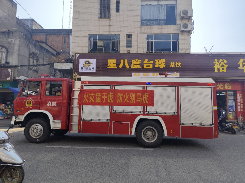 活动以消防车“走街串巷”形式广泛进行消防宣传开始,鲜红醒目的消防宣传标语悬挂在消防车身,播放消防宣传音频,深入繁华街道、巷头巷尾等场所进行巡游宣传,提醒群众关注消防,将平安送进千家万户。