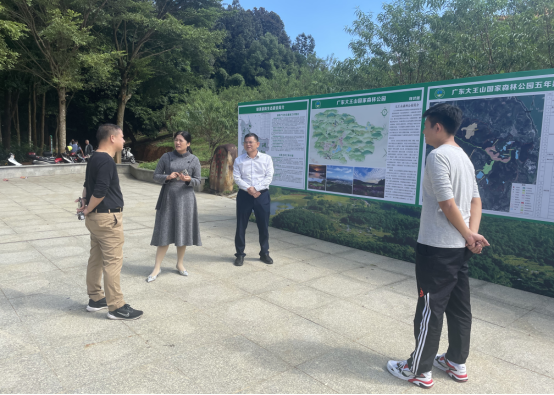 在大王山国家森林公园,邱桂英实地查看了公园绿美广东生态示范点灯光提升项目、自然教育基地建设、西门入口规划建设情况,详细听取了县林业局负责人对绿美广东生态建设示范点建设及森林公园规划发展等情况的汇报。