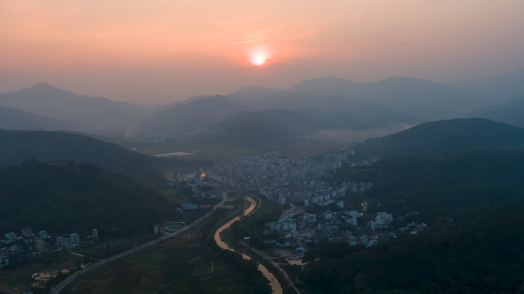 飞阅新农村:龙岗村落日时分--黎镇芳