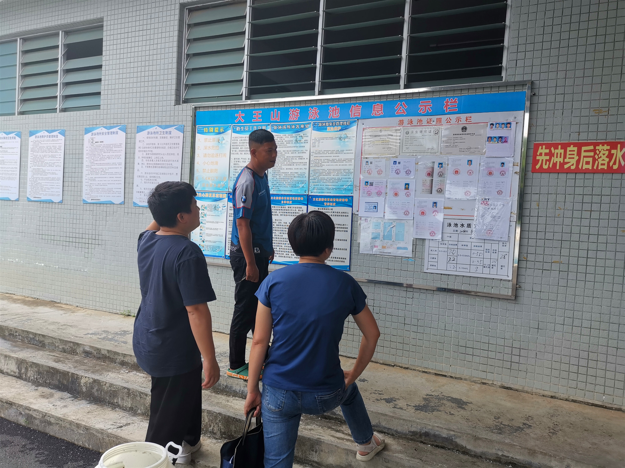 检查组认真查看了泳池经营场所各项证照、制度上墙情况,以及落实救生应急设施、场所码和疫情防控措施情况,针对检查中发现的问题,要求各经营业主现场整改落实,不能现场整改的,建立台账,限时整改,确保泳池经营场所扎实做好安全生产工作,严格落实疫情防控措施,慎始如终做好安全生产和疫情防控工作,共同营造平安、有序、和谐的文化广电旅游体育市场环境。