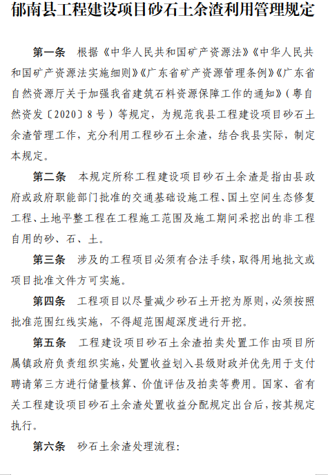 解读文本《郁南县工程建设项目砂石土余渣利用管理规定》