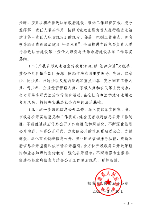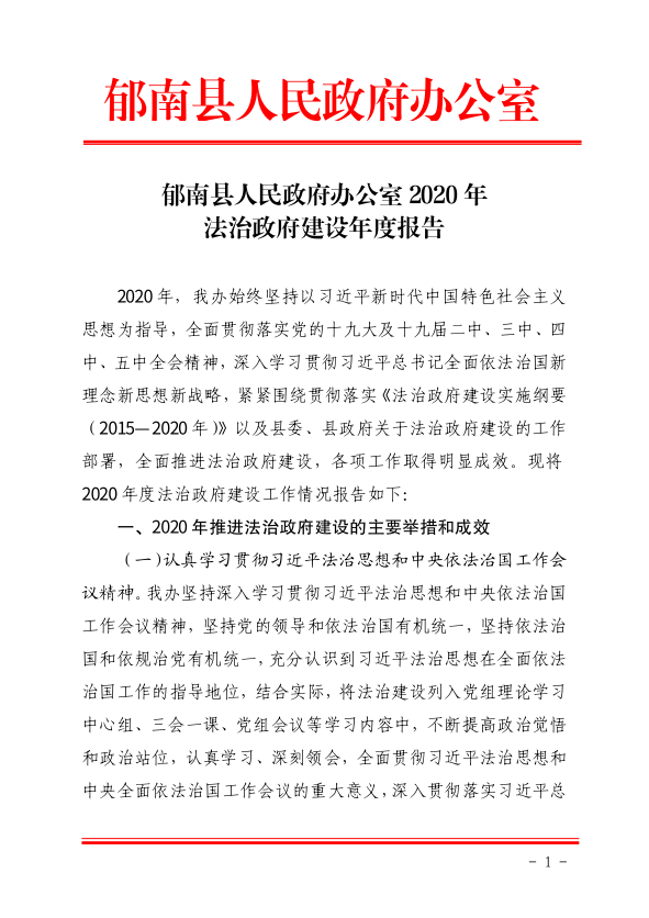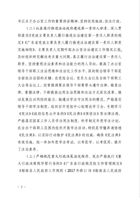 郁南县人民政府办公室2020年法治政府建设年度报告