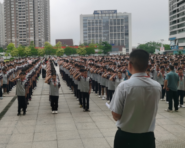为切实加强校园法治教育,增强全体师生的法治观念与自我保护能力,全力营造平安、和谐、文明的育人环境,2025年9月12日上午,郁南县实验中学全体师生齐聚综合楼广场,隆重举行了“法治进校园”主题教育活动。此次活动特邀都城镇派出所副所长、学校法治副校长、学校杰出校友黄锦权进校,为师生上一堂法治安全教育课。