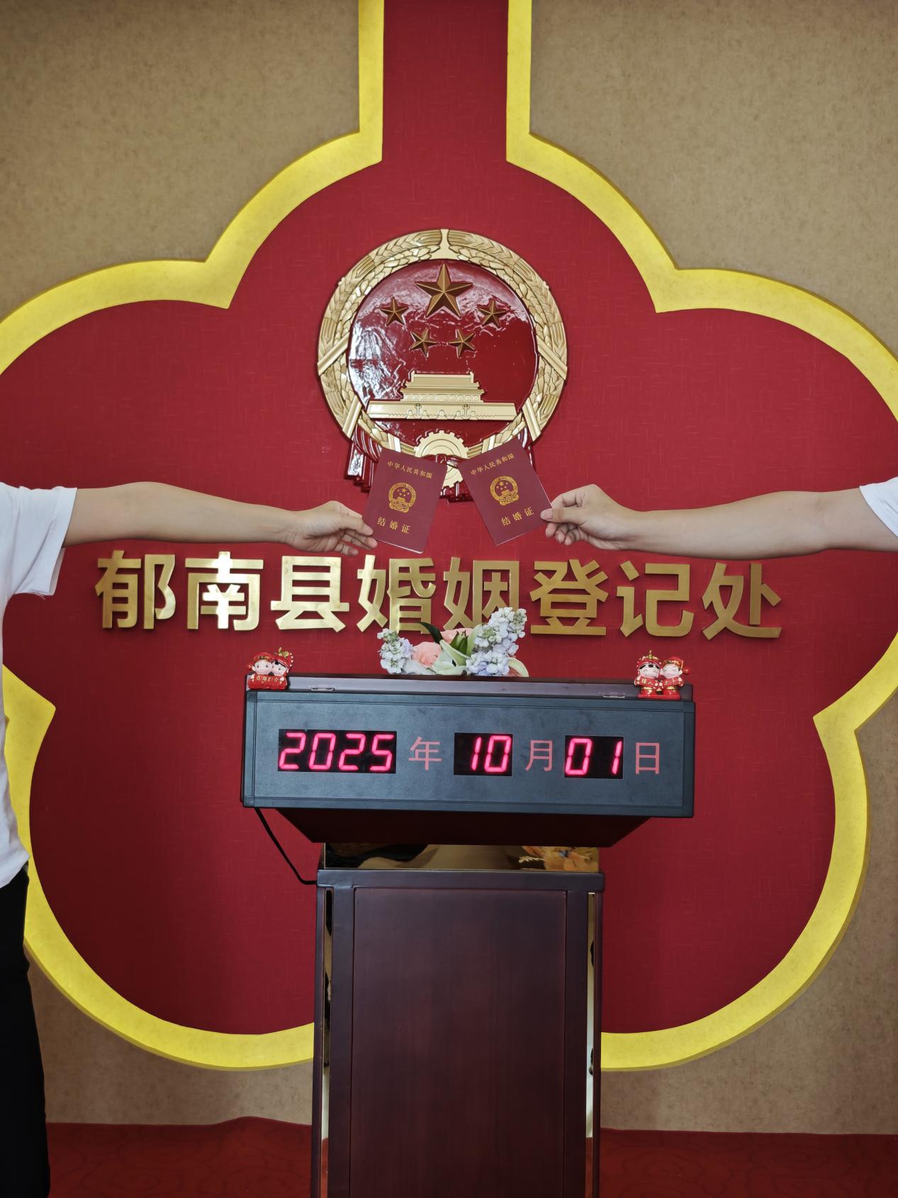 当日上午8时起,新人陆续抵达登记处,在工作人员的引导下有序办理手续。从材料核对到信息确认,从签字领证到合影留念,每一个环节都充满温情。“能在国庆节这天领证,让小家的幸福遇上大国的生日,太有意义了!”刚领到结婚证的新人谢先生难掩喜悦。此外,工作人员还现场开展婚俗改革宣传,倡导婚事新办、俭办,引导新人树立健康文明的婚姻家庭观念 。