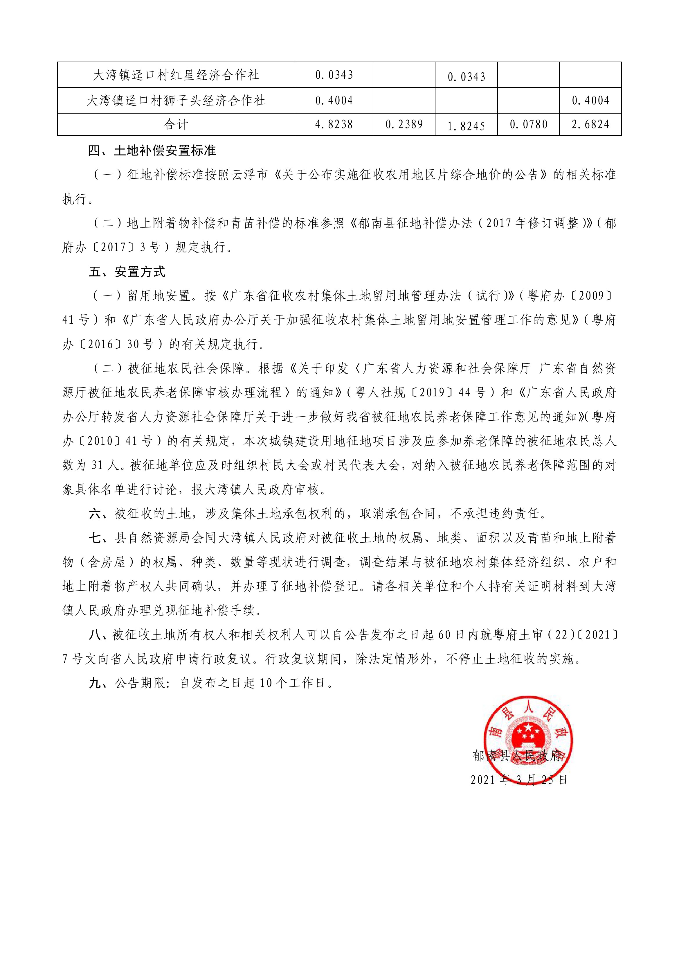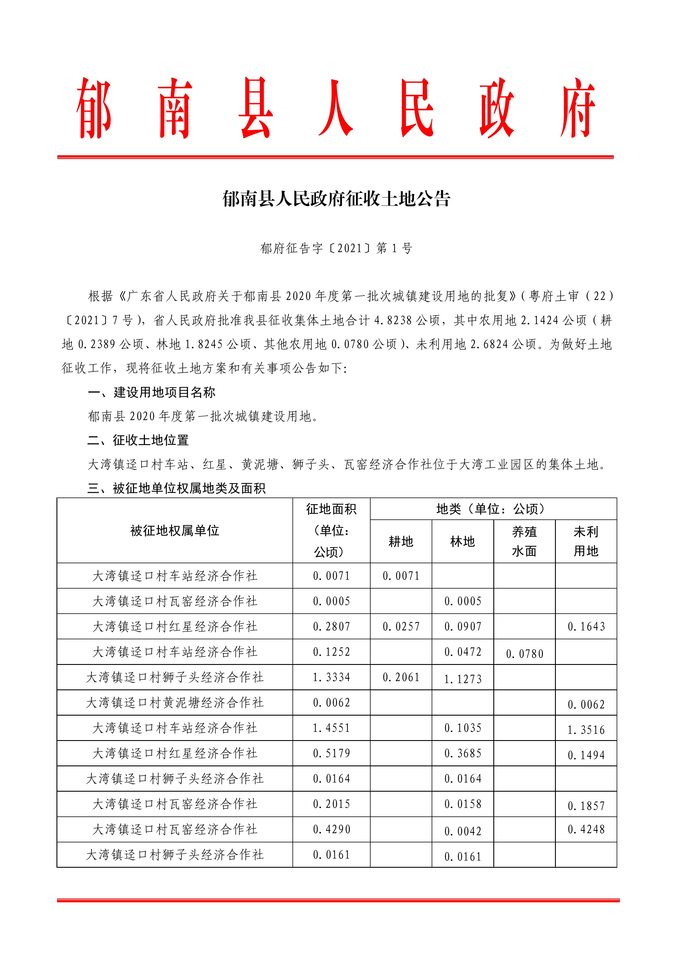 郁南县人民政府征收土地公告(郁府征告字〔2021〕第1号)