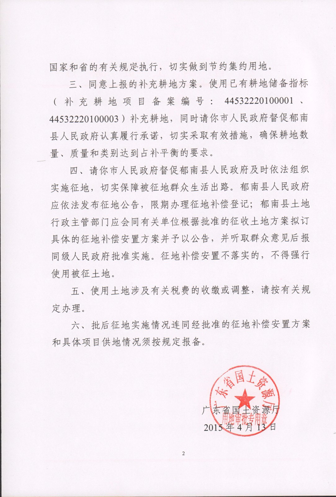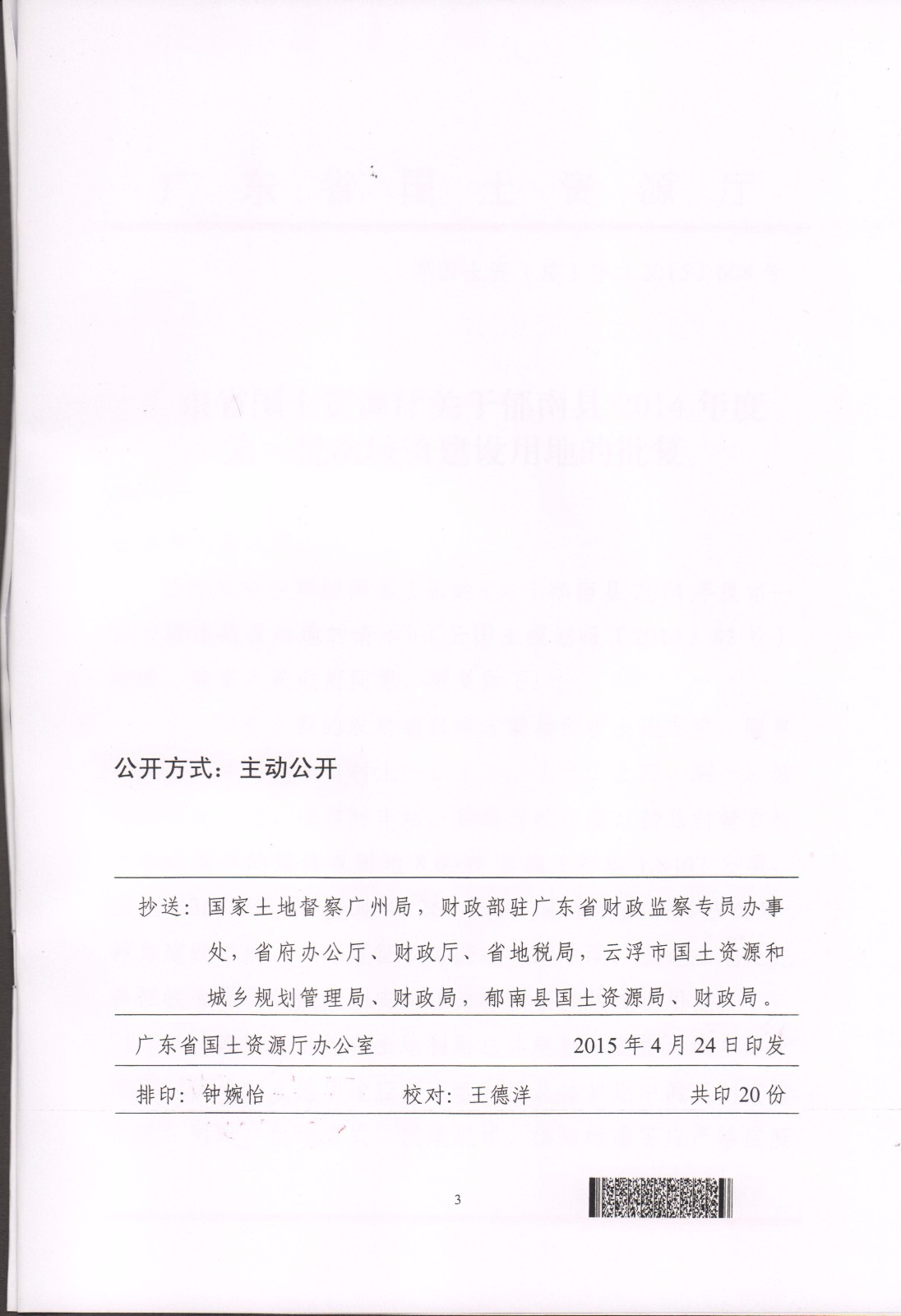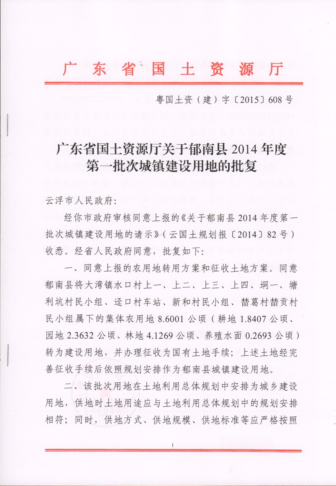 广东省国土资源厅关于郁南县2014年度第一批次城镇建设用地的批复